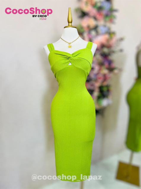 Vestido verde, tela gruesa de tirantes