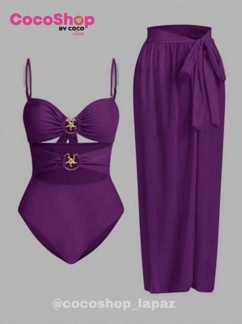 Traje de Baño color morado 2 piezas, con detalle de estrellas