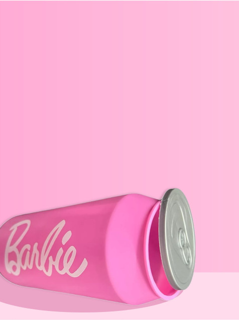 Vaso Barbie Cilindro en forma de Lata, inspirado en la película de Barbie. Cierre hermético