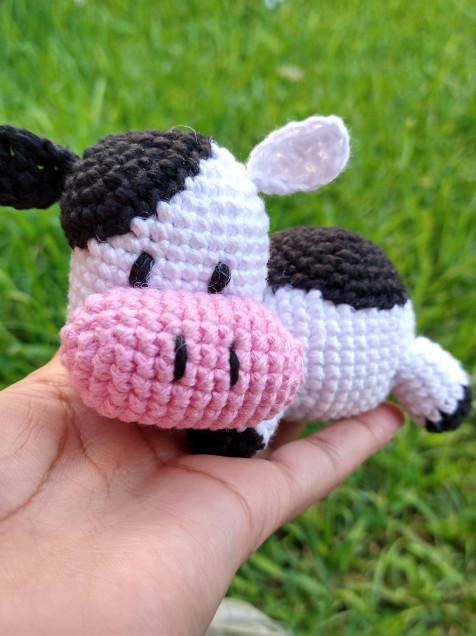Hermosa vaquita tejida a crochet con hilaza de algodón mide aproximadamente 12 cm.
