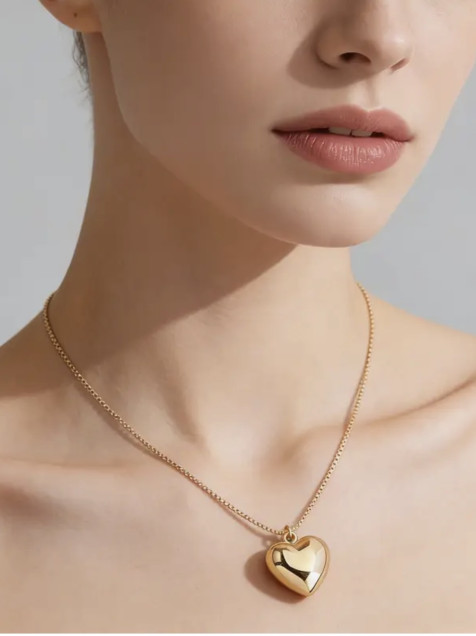Collar y dije de corazón “NUEVO” Material acero inoxidable Color dorado, para uso diario La verdad es muy lindo