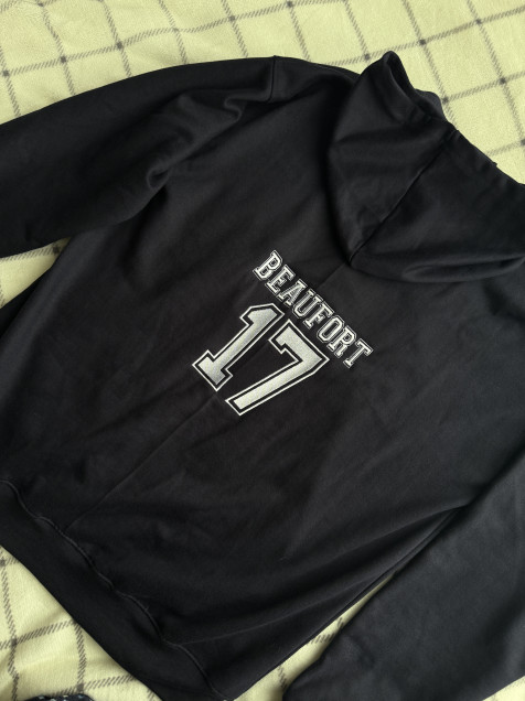 Sudadera bordada en el frente y en la espalda, tarda de 3 a 5 días hábiles en realizarse :) el bordado puede ser más chico que la imagen