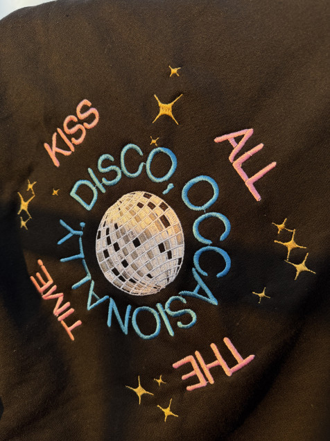 sudadera bordada en el frente y la espalda, tarda de 7 a 10 días hábiles en elaborarse :)