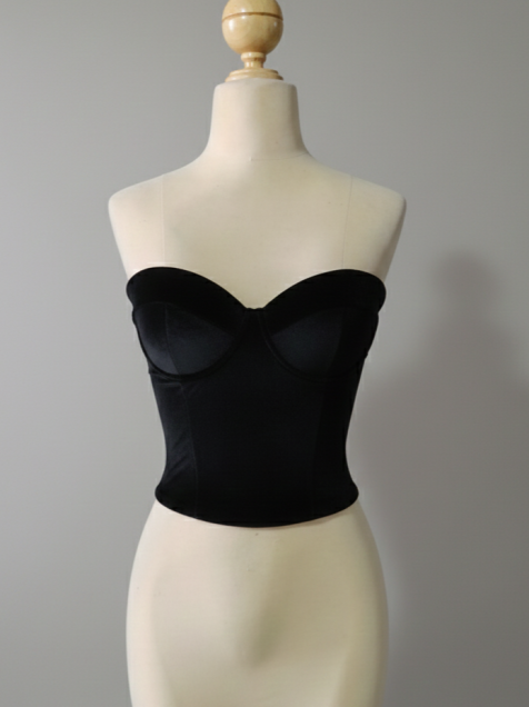 Bustier negro de terciopelo liso, perfecto para combinar con cualquier cosa