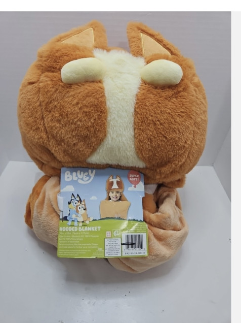 ¡Acurrúcate con estilo! Esta cobija frazada de Bluey es súper suave y acogedora, perfecta para noches de pelis o un sueñito reparador. ¡Con su gorro, es como un abrazo de tu personaje favorito!