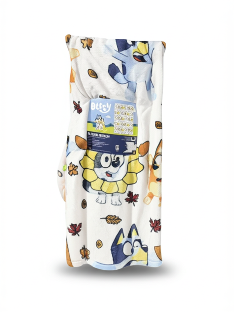 ¡Abrígate con Bluey y Bingo! Esta cobija individual de felpa, súper suave y con los diseños originales de tus personajes favoritos, te mantendrá calientito y contento. ¡Ideal para maratonear tus episodios favoritos!