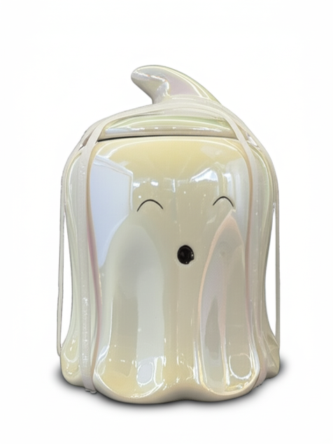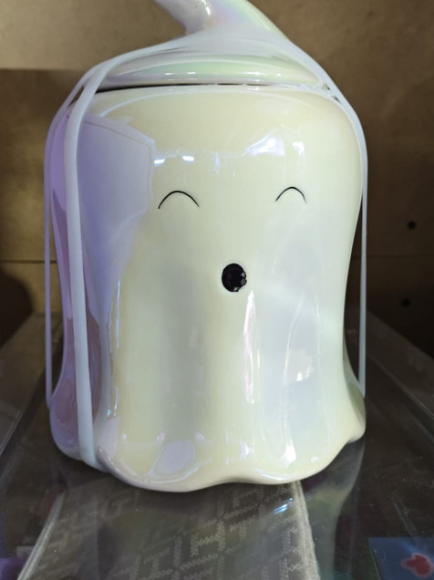¡Dale un toque fantasmal a tu cocina! Este galletero de cerámica con forma de fantasma no solo guarda tus galletas favoritas, sino que también añade un encanto único a tu decoración. Su acabado iridiscente y diseño adorable te robarán el corazón.