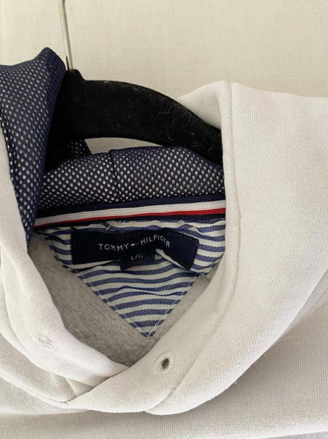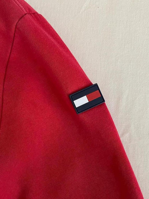 La calidad es excelente, tiene una placa en la manga color roja y el color está al 100%, tiene como desmanchado en la parte de abajo que se ve en las fotos, casi no se nota, 100% algodón 🤍