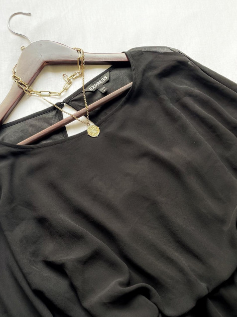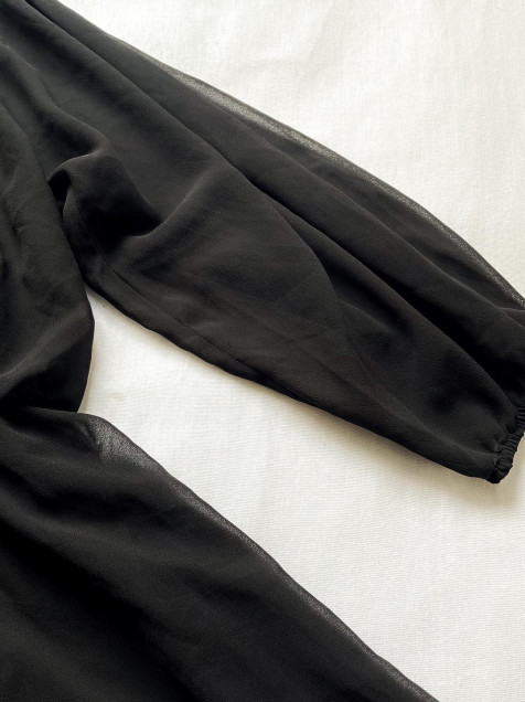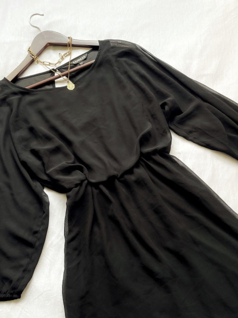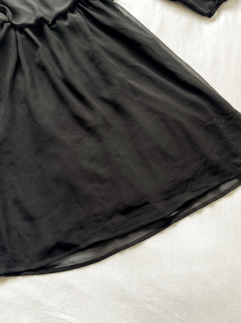 Vestido súper hermoso, por la parte de arriba está pegadito pero con mangas bombachas, la falda tiene un vuelo muy bonito y también tiene un fondo incluido 🥰
