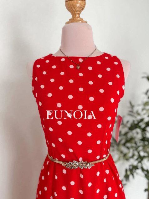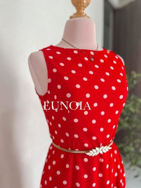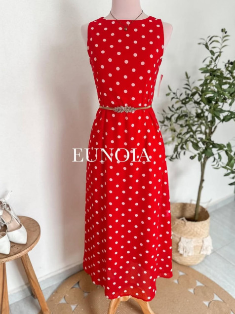 Vestido largo rojo de lunares, no incluye cinturón. NUEVO✨
