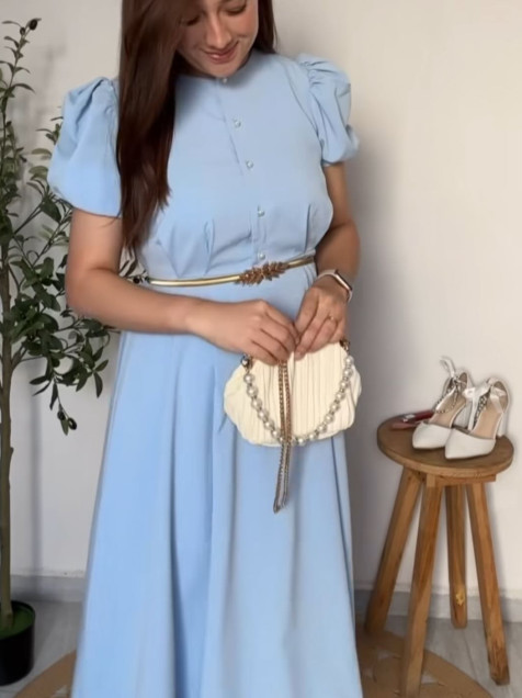 Vestido largo celeste con botones al frente, no estira. NUEVO✨