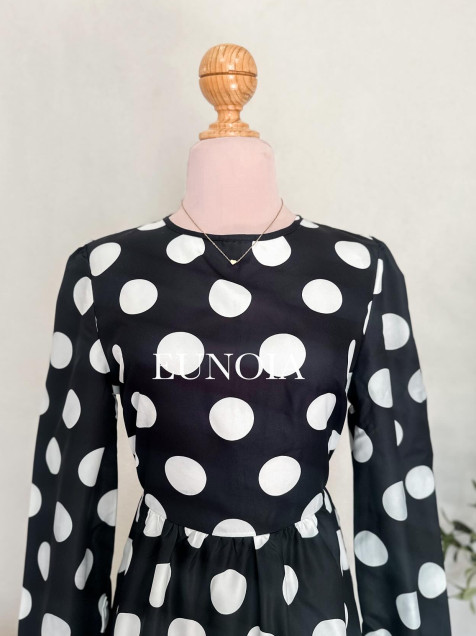 Vestido largo de lunares, cierre en espalda, no estira. NUEVO✨