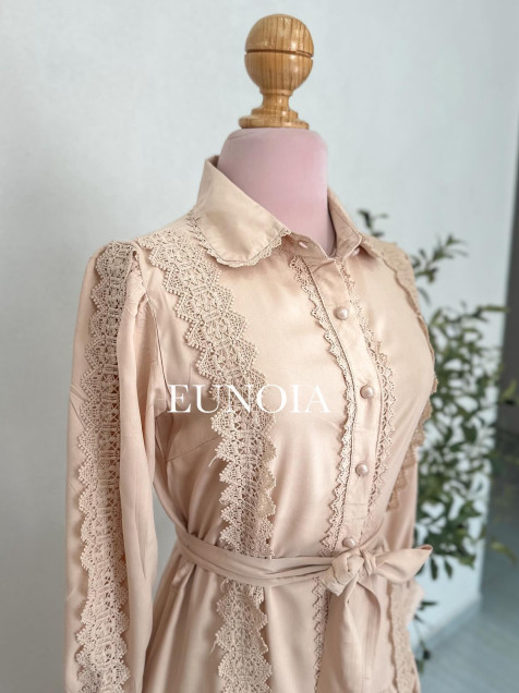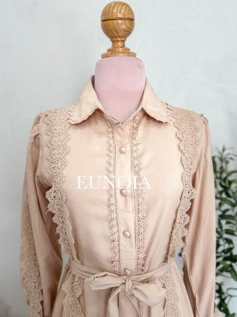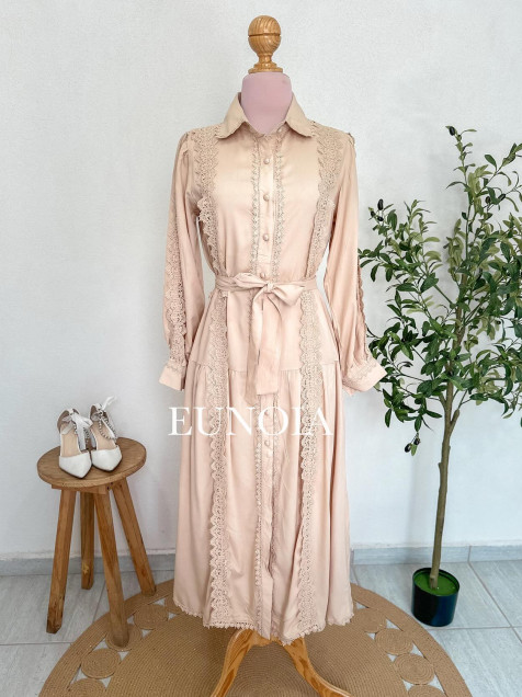 Vestido beige con encaje, botones funcionales. NUEVO✨
