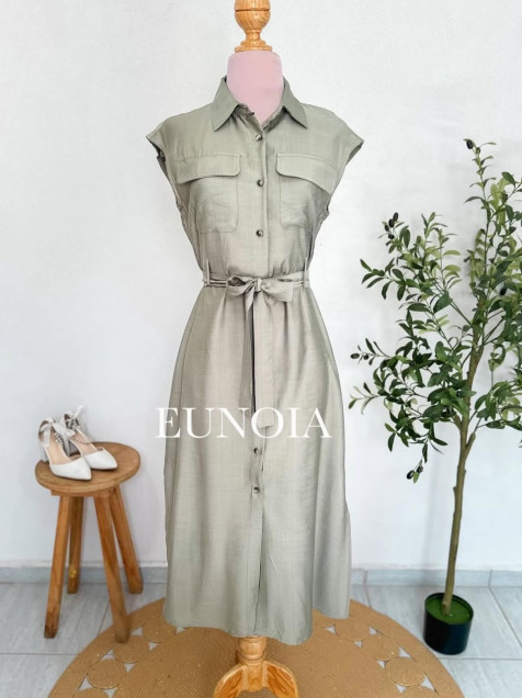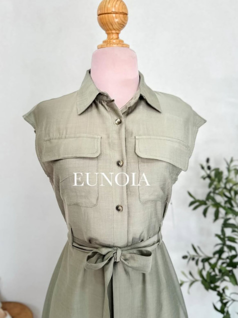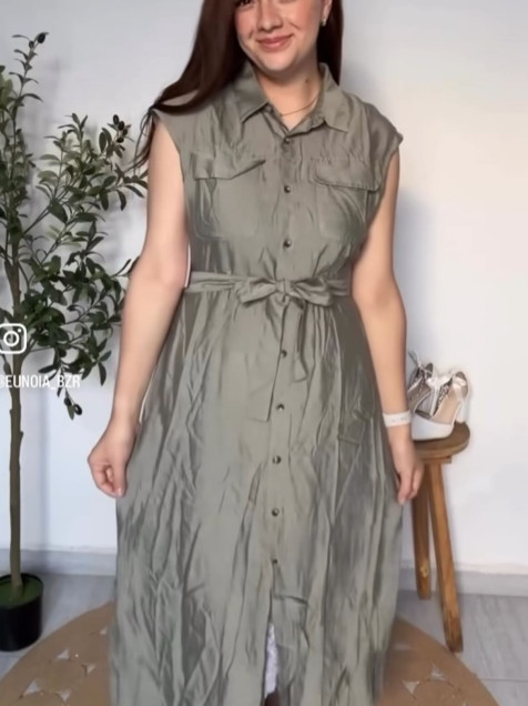 Vestido largo verde de botones funcionales al frente. NUEVO✨