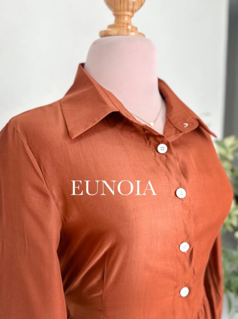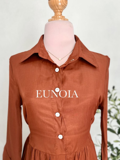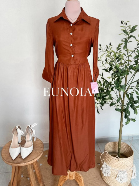 Vestido largo estilo camisero color café, botones funcionales al frente. NUEVO✨