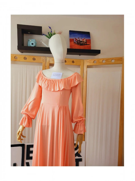 🧡🍊🥭Vestido 70's en poly elástico
