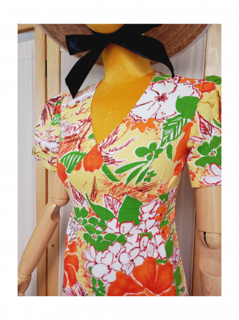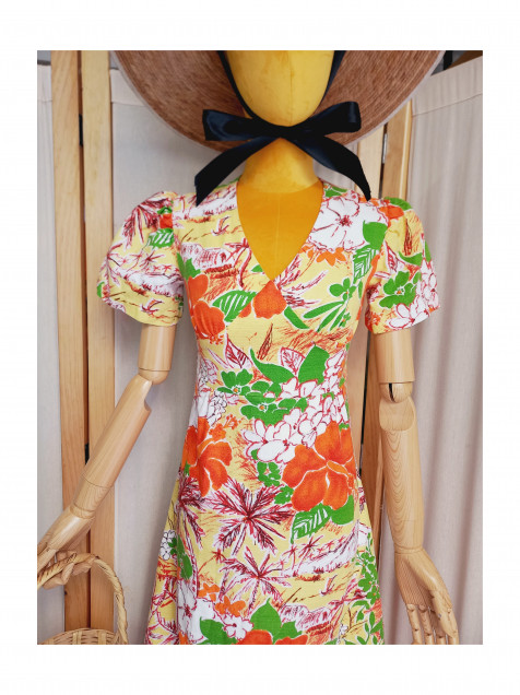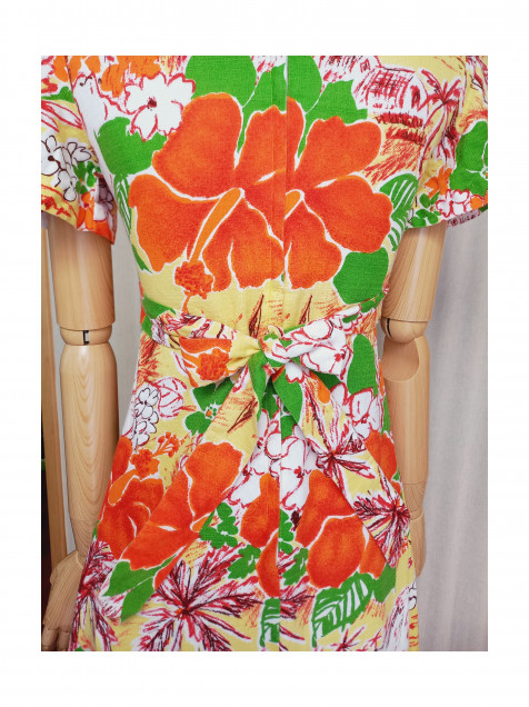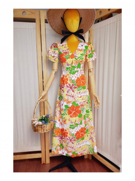 Vestido largo (midi o maxi dependiendo altura de quien lo use) Hawaiiano en 100% algod贸n