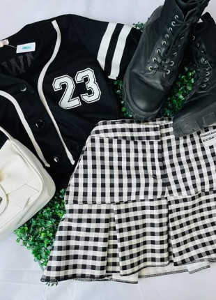 Falda a cuadros negro y blanco Upcycling...🖤🤍