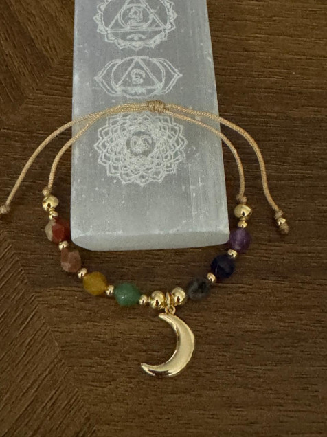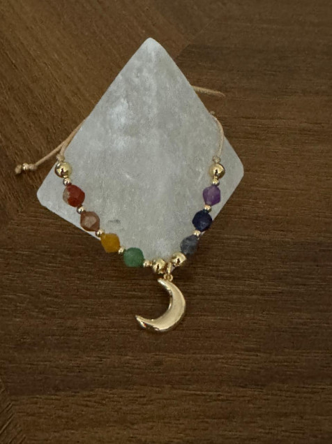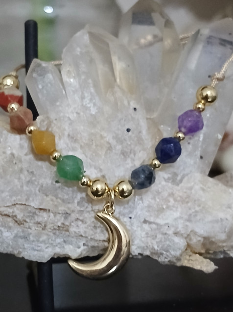Material: cuarzo natural, luna dorada y chapitas doradas