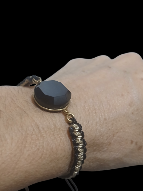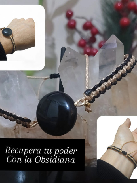 Pulsera de cuarzo Obsidiana (tejido doble)