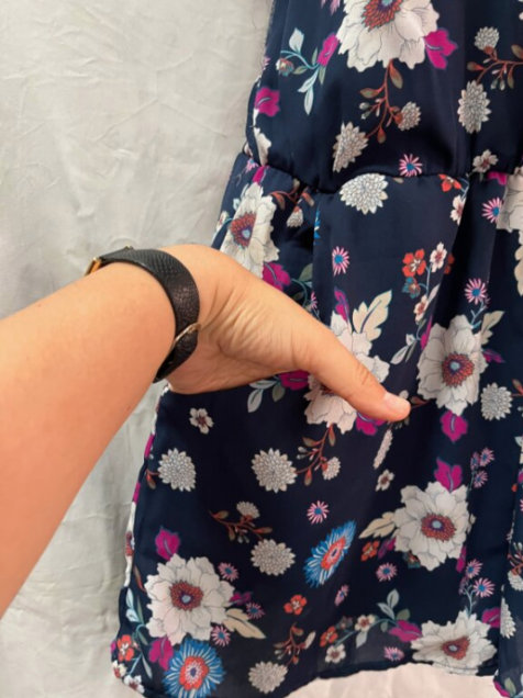 POLIESTER, RESORTE EN CINTURA, BOTON EN EL CUELLO, BOLSOS A LOS LADOS.