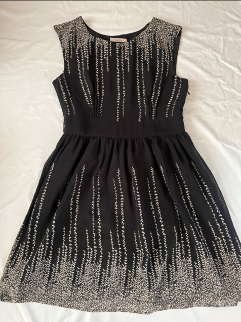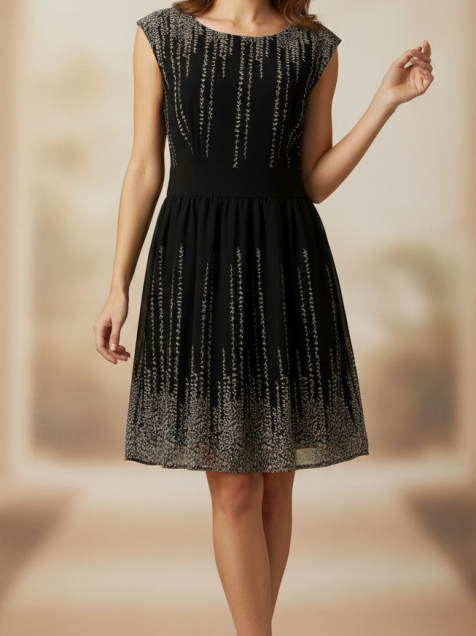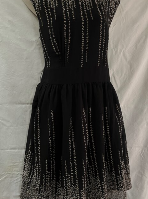 POLIESTER CON FORRO, TELA VAPOROSA, CIERRE EN ESPALDA.