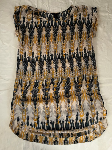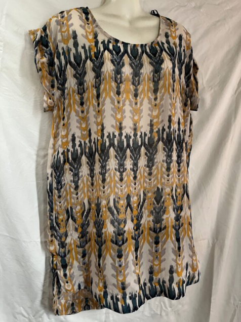 POLIESTER, TELA LIGERA Y VAPOROSA, SIN FORRO, CORTE HOLGADO.