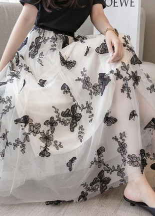 Falda de Tul con mariposas color Vino, Negra, marfil