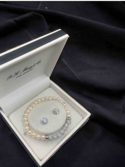 Una hermosa pulsera elástica de perlas cultivadas de agua dulce se realza con cuentas de cristal en este conjunto de dos piezas, que también incluye aretes de pavé de cristal.