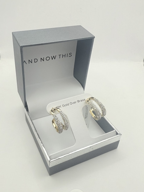 Moderno y glamoroso, eleva tu look con estos pendientes dobles con cristal. AND NOW THIS