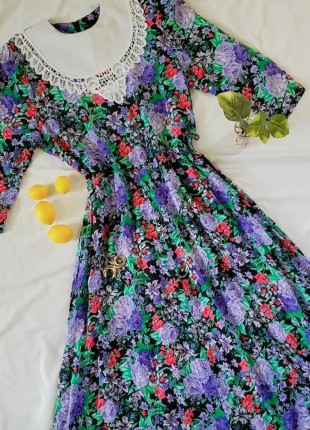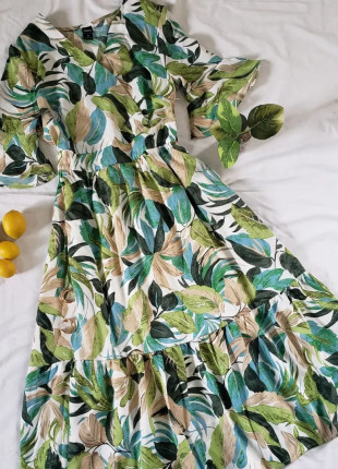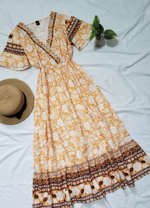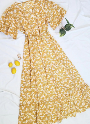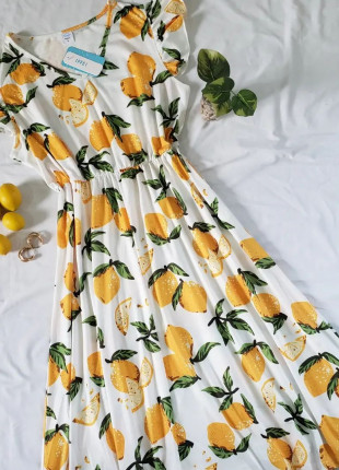 Vestido midi print limotes,manguita de olan y cuenta con elastico en cintura.