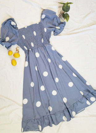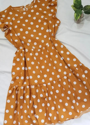 Vestido lunares,estilo flojito,tela 100%polyester,tiene un pequeño detallito que no afecta su uso(una manchita muy pequeña apenas y se ve).