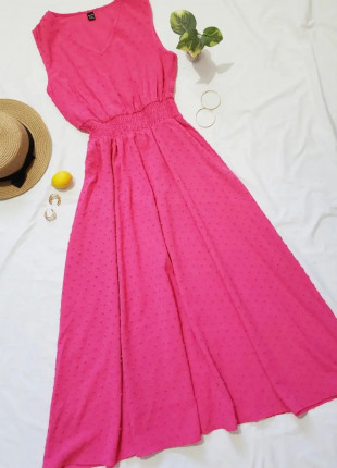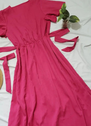 Vestido fucsia,tiene elastico en cintura y su citos para ajustar.