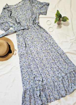 Maxi vestido,elastico en cintura y botones frontales parte del pecho funcionales(ojo este llego con detalle en el botón esta roto de un lado de los ol