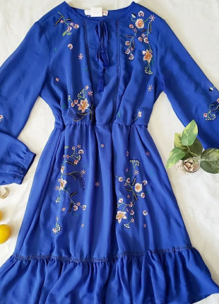 Vestido flores bordadas,tiene elastico en la cintura tiene detallito,no afecta su uso.