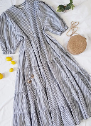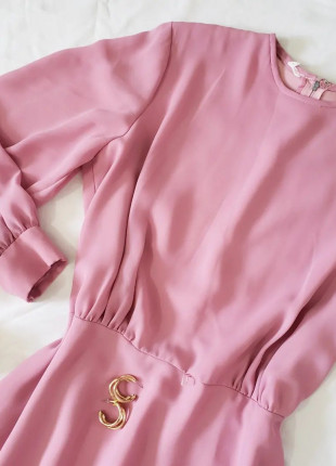 Vestido midi,tiene siper en la parte de la espalda y elastico en las mangas(tiene detallito no afecta su uso,se jalo un hilito)