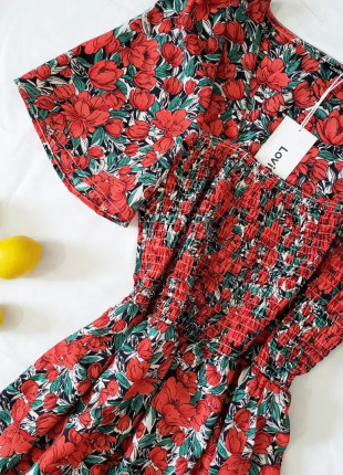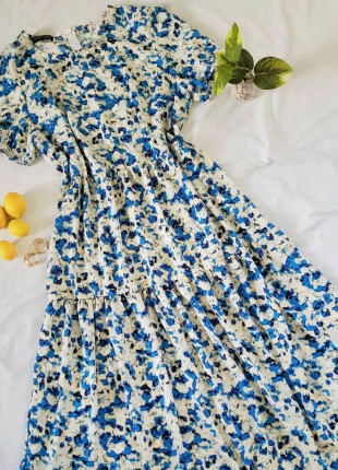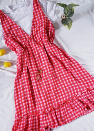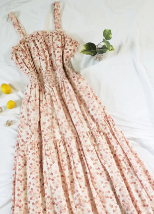 Vestido tipo campirano,dice talla L reducido a M,trae detallito no afecta en su uso.✨🍋(tiene un ollito muy pequeño no se nota por el tipo de estampado