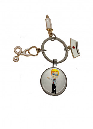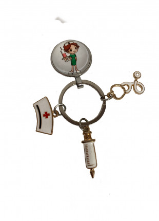 LLAVERO CON DISEÑO MEDICO ENFERMERA COFIA ESTETOSCOPIO Y JERINGA