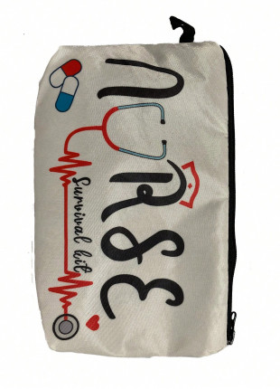 NECESER,COSMETIQUERA DE TELA IMPERMEABLE CON CIERRE Y ESTAMPADO ALUSIVO AL AREA MEDICA