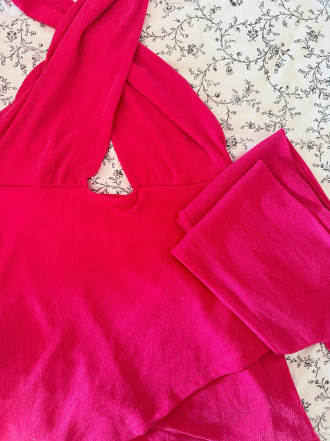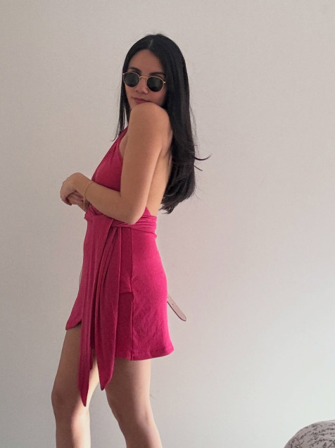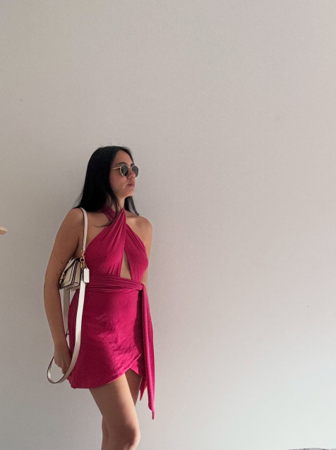 Vestido cruzado rosa con brillitos