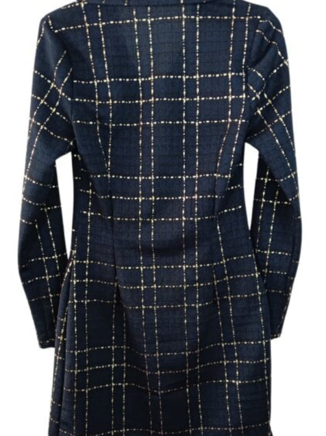 Hermoso vestido strech, de manga larga y cuello. La tela es tipo licra, no se transparenta. La verdad es que es muy lindo y elegante.