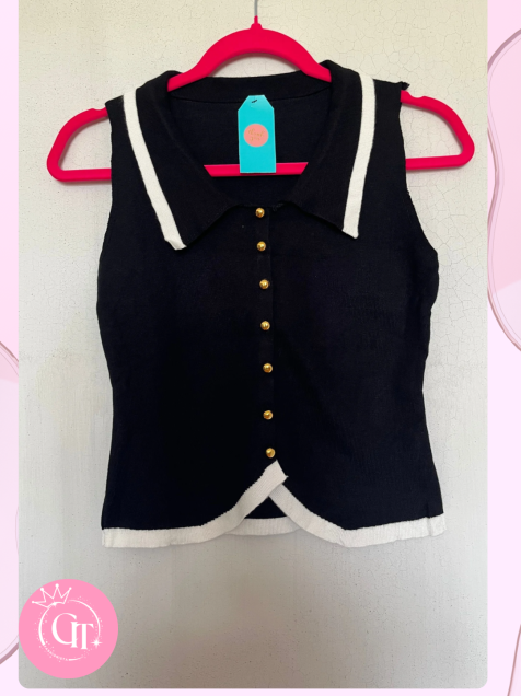 Hermosa blusa tipo polo, manga corta con botones dorados