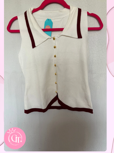 Hermosa blusas tipo polo manga corta, con detalles de botones dorados
