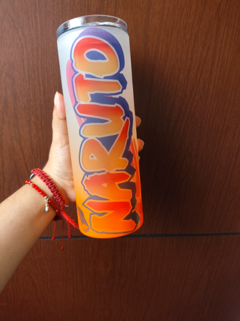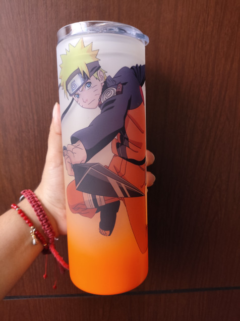 Vaso de vidrio de 600 ML color naranja cuenta con popote de metal y su tapa de plástico ✨✨✨