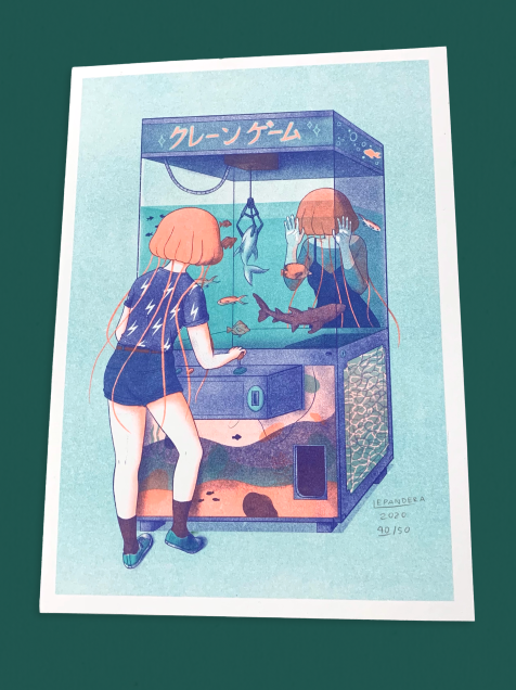 Risografía a 3 tintas sobre papel Bristol, tamaño carta