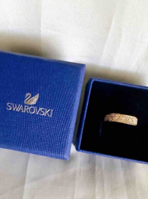 Hermoso anillo Swarovski en dorado, cuadrado, está divino! Talla 52 (6) Preloved, ligeros desgastes, no le falta ninguna piedra.