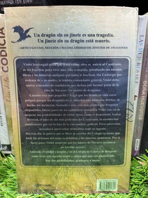 Violet Sorrengail creía que a sus veinte años se uniría al Cuadrante de los Escribas para vivir una vida tranquila, estudiando sus amados libros y las historias antiguas que tanto le fascinan. Sin embargo, por órdenes de su madre, la temida comandante general, Violet debe unirse a los miles de candidatos que luchan por formar parte de la élite de Navarre: los jinetes de dragones.