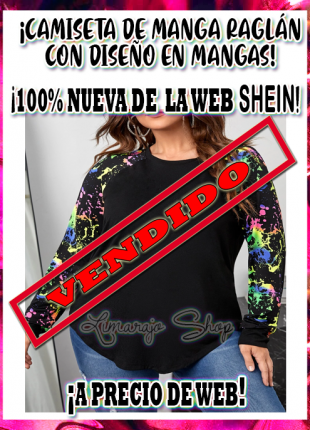 [SHEIN A PRECIO DE WEB] Camiseta con manga raglán y diseño de salpicado a color en mangas