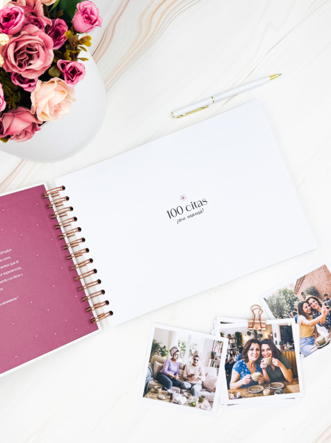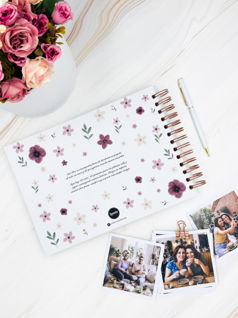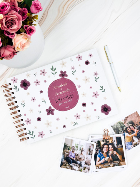 🌷El Note Book 100 Citas con Mamá, mide 19x25cm, cuenta con pasta dura resistente y un elegante espiral metálico, que lo hace único y duradero. ¡Lleva sus nombres en la portada y una dedicatoria especial escrita por ti en la contraportada!
