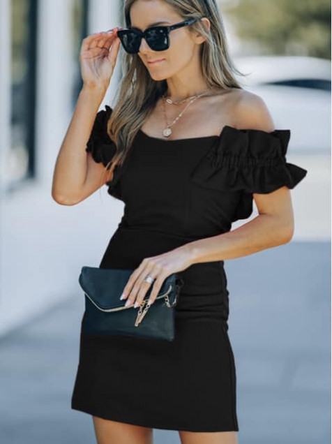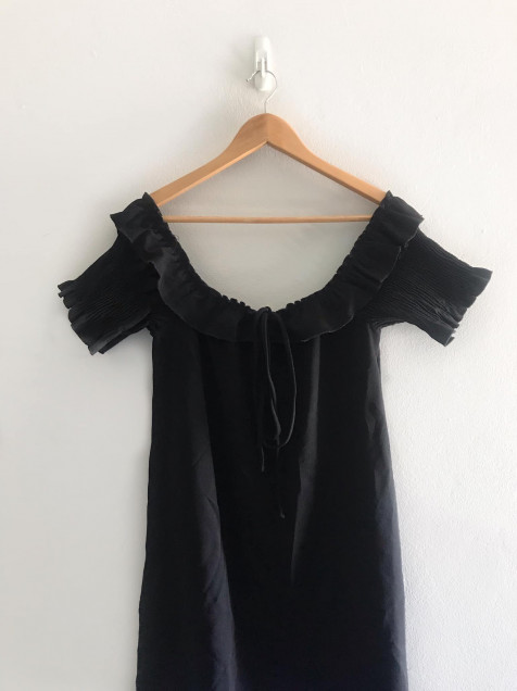 Vestido negro mangas abullonadas zara